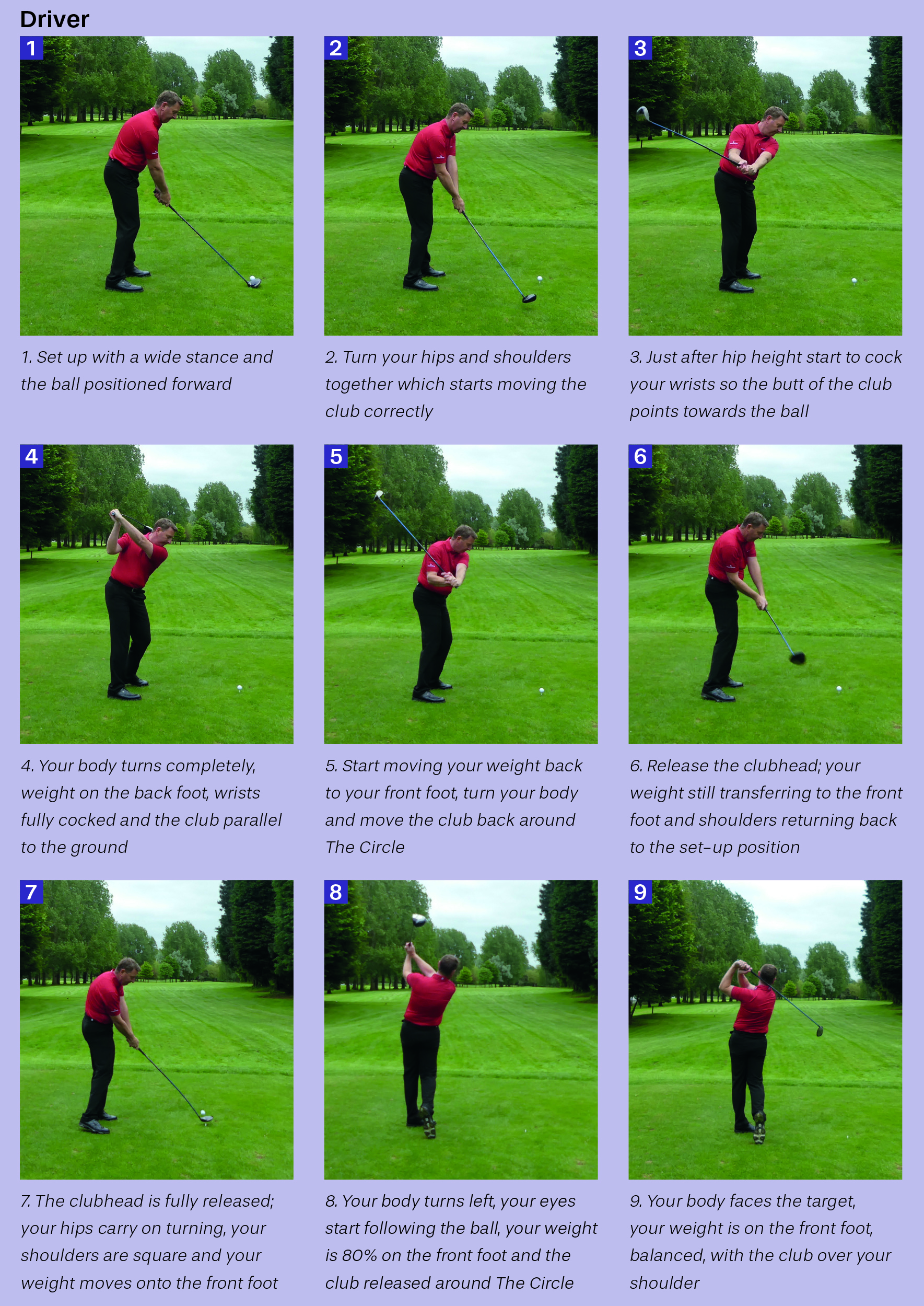 You have already learnt to align your club, and parallel to that your feet, knees, hips and shoulders. However, with the driver I don’t mind your feet pointing slightly to the right as this allows a bit more hip turn and lets you hit the inside of the ball more easily. The worst thing is to point your feet left, as you are likely to hit the outside of the ball and either pull or slice your tee shot.
